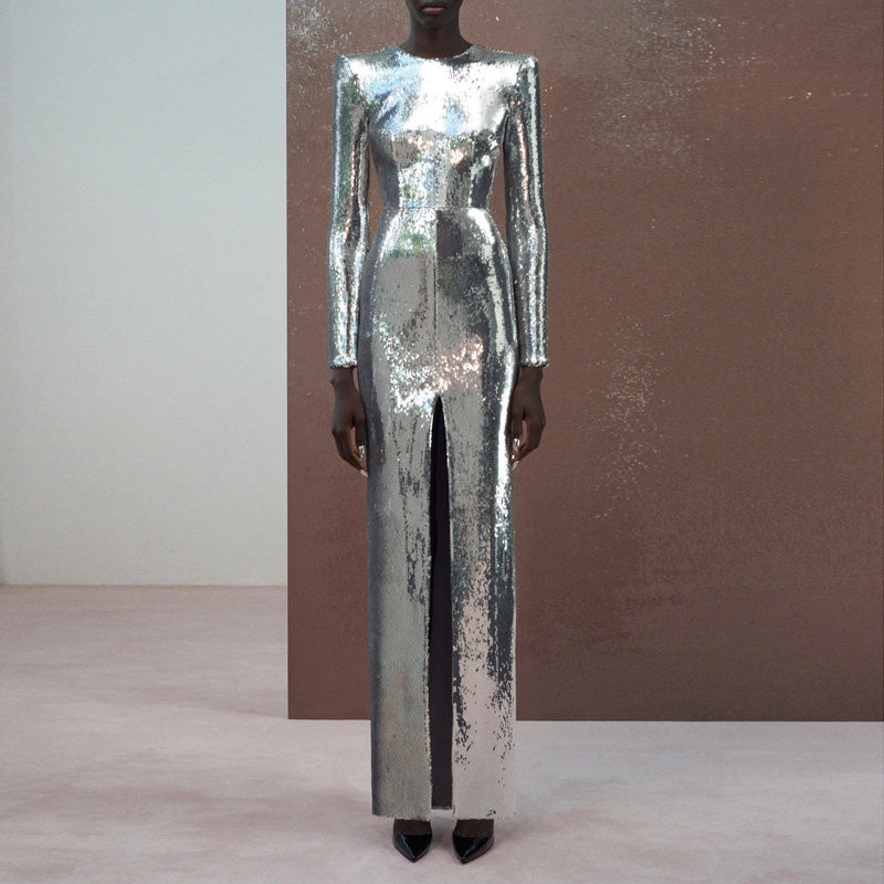 ALIDA Sequinned Maxi Evening Dress Gown
